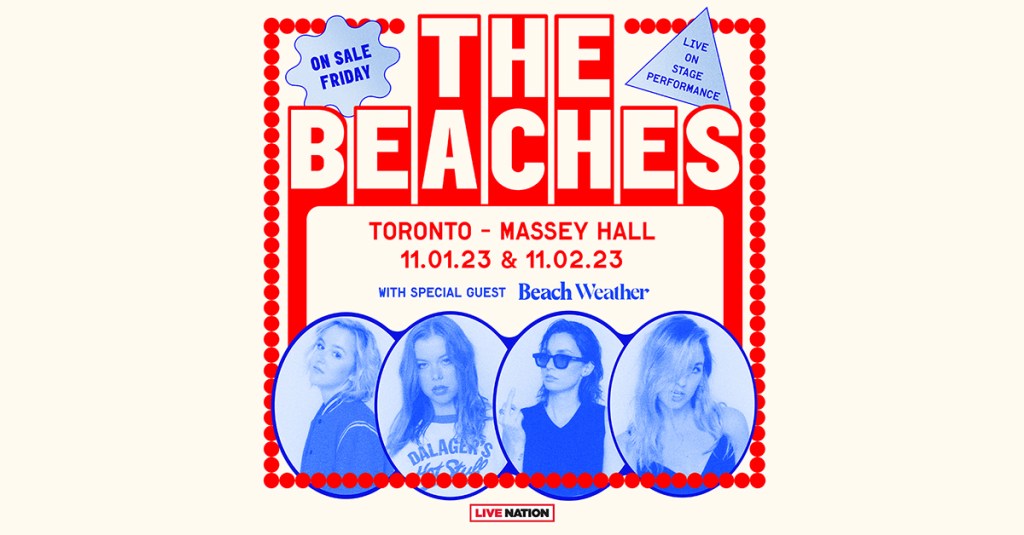 The Beaches (Nov 1 & 2) Where Massey Hall, Toronto Map When Nov 01/23 07:00 PM - Nov 02/23 11:00 PM Age All The Beaches – Blame My Ex Tour Support: Beach Weather Wednesday, November 1 & Thursday, November 2, 2023 Massey Hall – Toronto, ON Toronto 11.01 Toronto 11.02 http://https://www.youtube.com/watch?v=h2kUX_Fmj7k