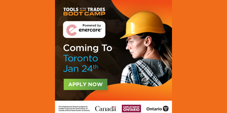 The Tools in the Trades Boot Camp is coming to Toronto on January 24th, powered by Enercare. This FREE event is for adults interested in the skilled trades. Apply today! Spots are limited.