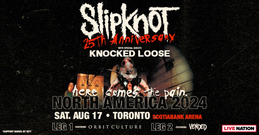 Slipknot stops at Scotiabank Arena on August 17th  for the “Here Comes the Pain” 25th Anniversary Tour