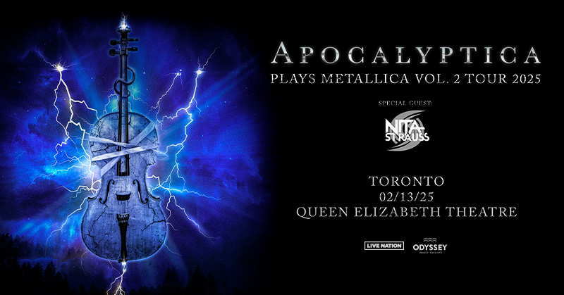 Apocalyptica Where Queen Elizabeth Theatre, Toronto Map When Feb 13/25 07:00 PM - Feb 13/25 11:00 PM Age All Website https://admitone.com/events/apocalyptica-toronto-9578946 Apocalyptica Plays Metallica Vol. 2 Tour hit Queen Elizabeth Theatre on February 13th, 2025! Support: Nita Strauss Buy tickets here.