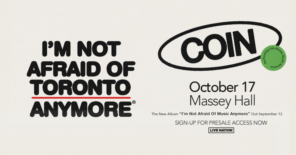 COIN comes to Massey Hall on October 17th for the I’m Not Afraid of Toronto Anymore Show!