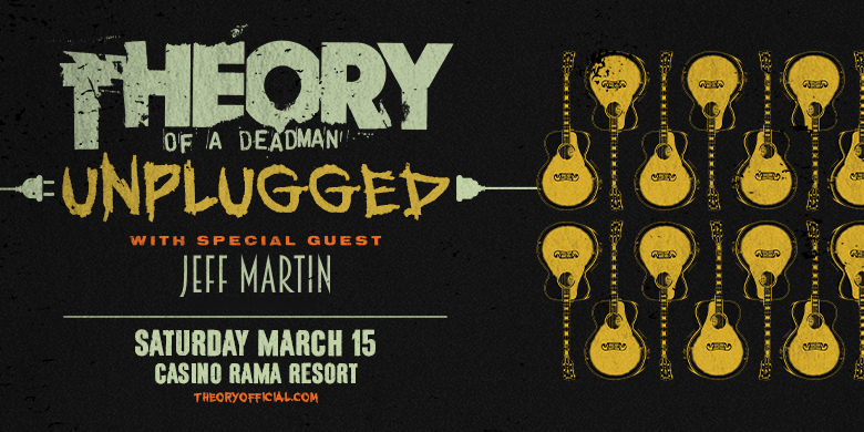 Theory of a Deadman “UNPLUGGED” Where Casino Rama Resort, 5899 Rama Rd, Rama, ON L3V 6H6 Map When Mar 15/25 07:00 PM - Mar 15/24 11:00 PM Age 12+ Price Starting at $40+ Buy Tickets Website https://www.casinorama.com/theory-deadman-unplugged/ Theory of a Deadman “UNPLUGGED” hits Casino Rama Resort on March 15th with special guest Jeff Martin Buy your tickets here!